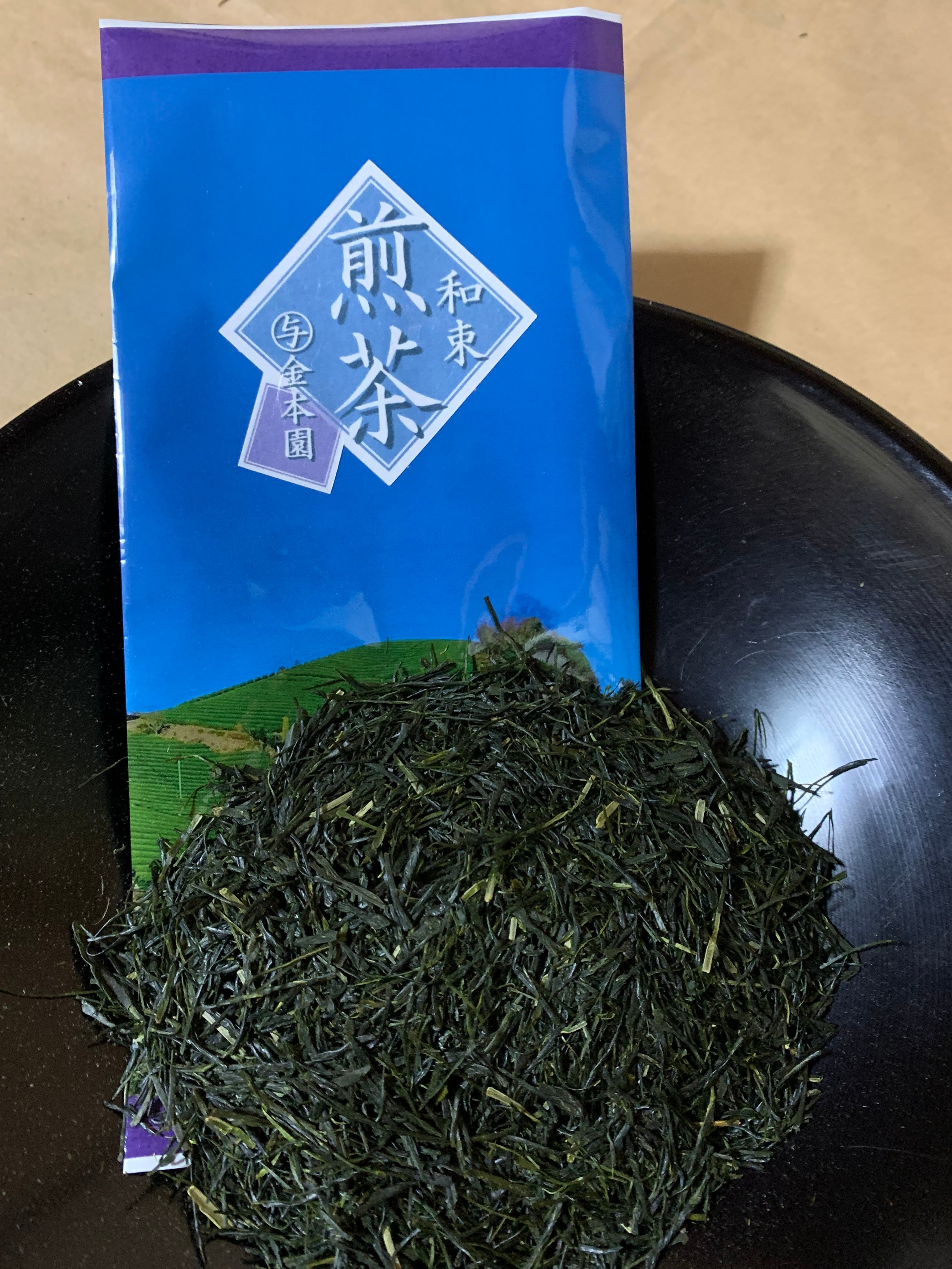 丸与 金本園で今年一番に収穫した被覆13日の煎茶です。